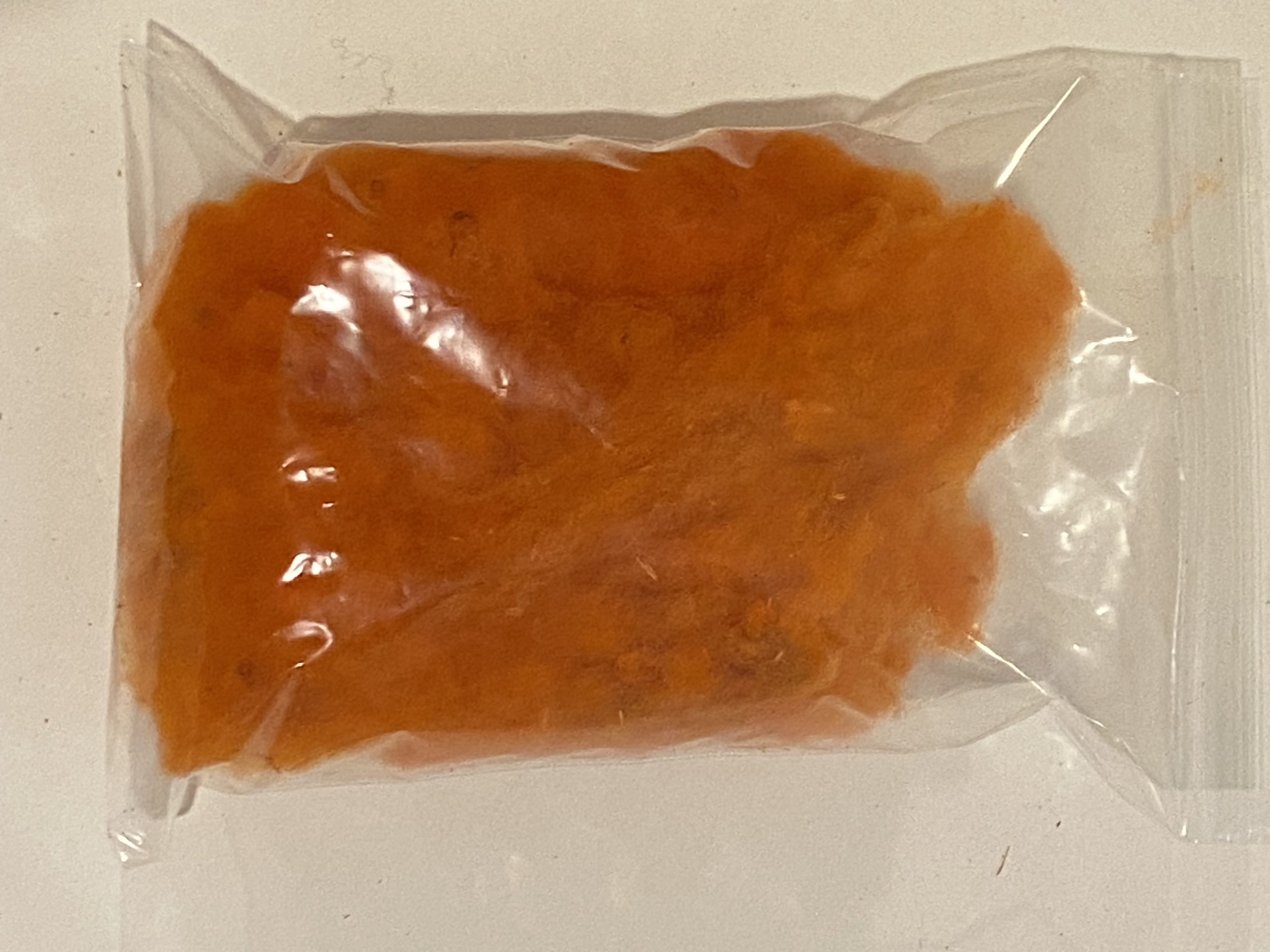 This is wool batt that has been skirted, washed, drum-carded, and dyed.  Each package contains 14 grams of wool which is about .5 ounces.